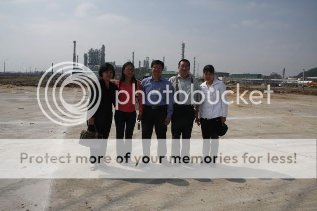 Sau điểm đến đầu tiên là Đê chắn sóng và Cảng xuất sản phẩm hùng vĩ và đẹp như một bức tranh, cả đoàn đi ngược theo tuyến ống dẫn sản phẩm, xuyên qua khu bể chứa sản phẩm và đến Khu hành chính của NM. Sau khi gặp gỡ với Ban QLDA, cả đoàn ra tham quan công trường, đi dọc hết các phân xưởng công nghệ và phụ trợ, sau đó dừng chân tại phía đông NM để được giới thiệu thêm về NM và chụp ảnh lưu niệm.