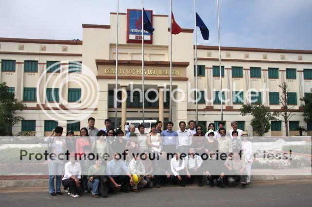 Chụp ảnh lưu niệm trước Trụ sở Công ty Lọc hóa dầu Bình Sơn: