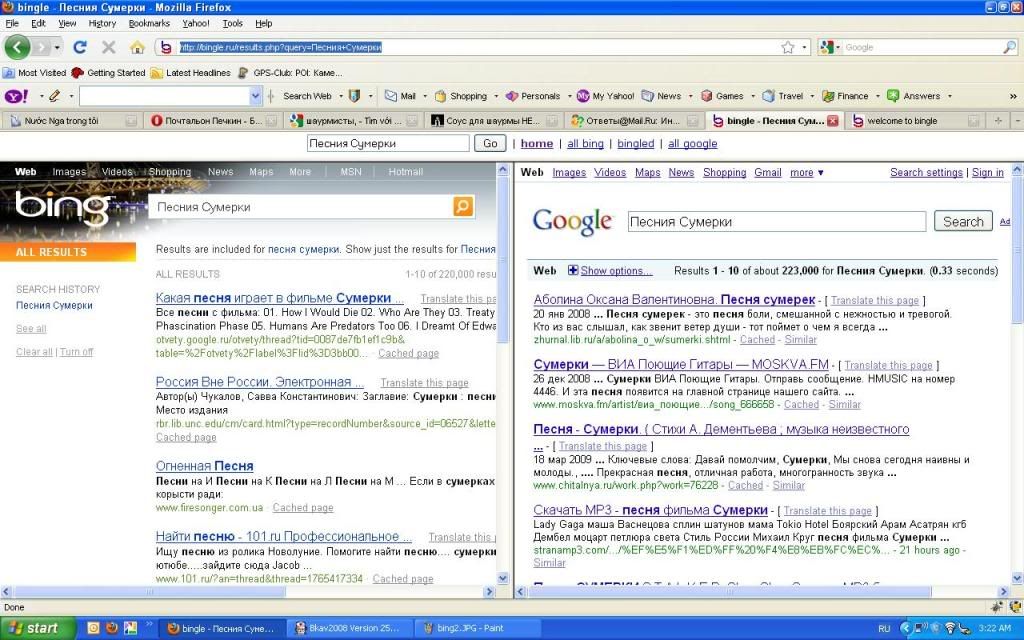 Và Kết quả tìm kiếm của cả hai chàng thám tử Nga, Mỹ: