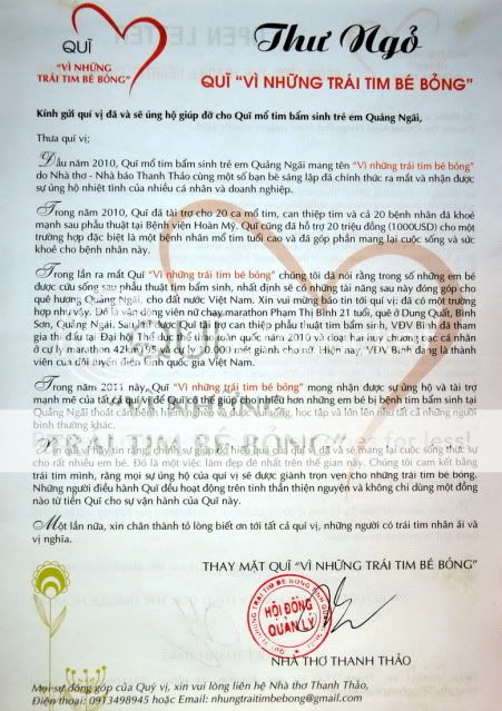 Ngày mai em sẽ có tường thuật chi tiết. Còn giờ mệt quá, chỉ kịp gửi đến các bác một lá thư ngỏ và một phóng sự nói về Quỹ này.