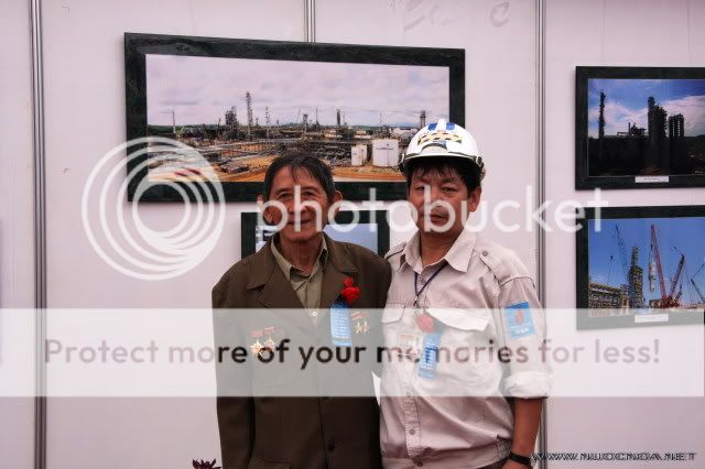 Nhân tiện hôm thứ 7 có Phó TT Hoàng Trung Hải đến thăm bọn em, em có cái ảnh post lên đây gọi là cập nhập thông tin. ![]() Anh Hải béo có thói quen chắp tay trước bụng. Em rình mãi mới chộp được cái ảnh anh Hải đưa tay chỉ đạo. Thực ra post ảnh của mình lên đây mà khoe thì e không hay lắm, nhưng em nghĩ các bác tất cả đều rộng lượng tha thứ cho em. Là vì trong đợt Tổng kết phong trào thi đua liên kết XD NMLD Dung Quất Lãnh đạo em có bảo em làm một cái triển lãm ảnh về công tình xây dựng NMLD. Thế là em làm. Hì hì. Làm ra cũng thấy hoành tráng phết. Thôi thì nhân tiện em up vài cái ảnh. Các bác đừng mắng em khoe khoang. Просто em chỉ muốn mọi người cùng chia vui vì lần đầu tiên trong đời em triển lãm ảnh (của một tên chộp ảnh nghiệp dư). He he cảm ơn các bác! ![]() Toàn cảnh phòng trưng bày: ![]() ![]() Anh Hải béo cũng ghé qua xem, em phổng mũi lắm: ![]() Tác giả: ![]() Các bác có nhận ra em chụp hình với ai không: ![]() CHÚC CÁC BÁC MỘT TUẦN LÀM VIỆC VUI VẺ: