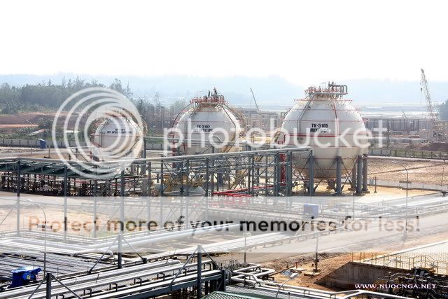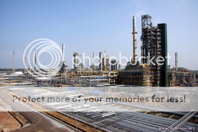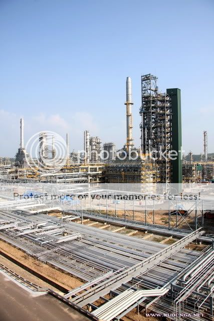 Chỉ còn hơn một tháng nữa NMLD Dung Quất sẽ vận hành ra sản phẩm. Rất không may cho chúng em là những tháng cuối năm mưa khủng khiếp. Sang đến tháng một (Dương) mà vẫn còn mưa. Mặc dù vậy các công việc trên công trường vẫn được khẩn trương hoàn tất. Nhiều công tác đã hoàn thành 100% như xây dựng, lắp thiết bị, đường ống v.v. Các công việc còn lại chủ yếu là kiểm tra, căn chỉnh, dọn dẹp công trường và chạy thử các phân xưởng đã hoàn thành. Ngày hôm qua 13.1 hiếm hoi có một ngày đẹp nắng, bầu trời trong xanh như mùa hè (nhưng hôm nay thì lại mưa tầm tã rùi). Em cũng tranh thủ chộp được mấy tấm hình để báo cáo cùng các bác. Các bác ơi! Tất cả hầu như đã xong. Nhà máy đẹp và hoành tráng. Chỉ đợi đến ngày vận hành chính thức. Mời các bác xem một số ảnh! Một phần NMLD nhìn từ phía đông: Ngọn đuốc của NM đã được đốt thử: Trên đầu ngọn đuốc có lửa, vì là đốt thử và gió mạnh quá nên ngọn lửa thấy bé: Khu bể chứa dầu thô đã xây dựng xong (bên trong đang chứa dầu thô và dầu DO): Chỗ này đoàn tham quan của NNN đã dừng chân: Phân xưởng Cracking xúc tác - Trái tim của NMLD đã lắp dựng xong: Các phân xưởng công nghệ đã xong. Đẹp và hoành tráng: