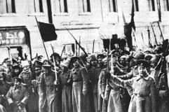 Trong khi đó, binh lính bắt đầu giải quyết vấn đề hòa bình bằng cách đào ngũ, nông dân đốt nhà địa chủ và chiếm lấy ấp trại lớn, công nhân thì phá hoại và đình công… đương nhiên là bon chủ nhà máy, địa chủ và sĩ quan dùng mọi quyền lực của họ để chống lại bất cứ một cuộc hòa giải dân chủ nào…