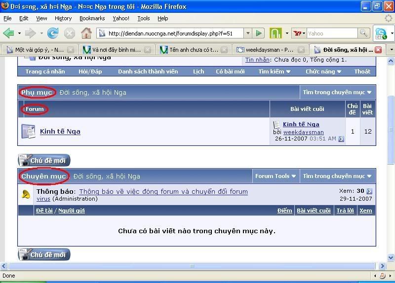 Diễn đàn chúng ta có chia ra các diễn đàn nhỏ hơn, và chúng ta hay gọi là "các box". Ví dụ box "Đời sống, xã hội Nga". Dưới các box lớn đó, ta có thể phân chia thành các box nhỏ hơn nữa (subbox) mà như theo hình trên thì nó được phân biệt bởi chữ "Phụ mục". Ở đây, ý muốn nói đến là: phụ mục của box "Đời sống, xã hội Nga" đó là box nhỏ "Kinh tế Nga".