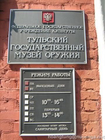 Bảo tàng vũ khí Tula. Nơi đây sưu tầm hầu như tất cả các loại vũ khí hạng nhẹ của Nga và trên thế giới. Với quy mô 2 tầng nhà, bảo tàng giới thiệu hầu hết các loại vũ khí từ thời cổ đến hiện đại.