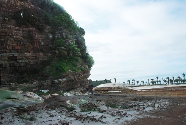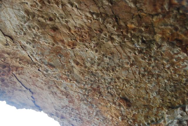 Đó là vách đá ven biển, nằm ở phía bắc núi Đầu Nở, giáp kề bến Nghiêng, thuộc phường Vạn Hương, quận Đồ Sơn, Hải Phòng. Vách đá cấu tạo bởi các đá trầm tích lục nguyên có tuổi Devon, cách nay 416 đến 360 triệu năm. Đá ở đây có nhiều màu, từ màu tím gụ, nâu, xám lục nhạt đến trắng. Vách đá Giọt Mưa ![]() Tại vách đá này và phần thềm biển giáp kề còn lưu lại phong phú dấu vết hoạt động sống của sinh vật. Có thể gặp ở đây rất nhiều di tích hang hốc của sinh vật cổ, sống cách nay khoảng gần 400 triệu năm. Những dấu vết này được chia thành hai loại: Trong một số lớp sét, bột kết chứa nhiều di tích hang chui rúc theo hướng ngang là chủ yếu của những sinh vật chưa rõ vị trí phân loại, có đường kính 1-5cm. Các di tích hang đào này có thể cắt chéo nhau, thường có vị trí ở gần mặt lớp (đến độ sõu 10-15cm). Ngoài ra còn có thể thấy những dấu vết hang đào theo chiều thẳng đứng (vuông góc với mặt lớp) của một loại sinh vật có kích thước nhỏ hơn (đường kính 0,5-1cm) được gặp phổ biến trong một số lớp sét bột kết. Dấu vết hai loại hang chui rúc của động vật ven bờ biển cổ: ![]() ![]() Loại lớn, nằm song song với mặt lớp đá ![]() ![]() Loại nhỏ, vuông góc với bề mặt lớp đá Điều đặc biệt lý thú là trên trần của một chiếc hang đá còn lại vết tích phong phú của các giọt mưa thời nguyên thuỷ. Các dấu tích giọt mưa nơi đây đã được phân tích trong một công trình khoa học của chúng tôi. Chúng hiện diện vô vàn trên trần hang, tất cả đổ nghiêng về một phía như những giọt mưa ngày nay rơi xuống mặt đất thường cũng vậy. Về điều này, cố nhà thơ Xuân Diệu từng có một bài thơ rất hay, xin trích đoạn nói về vết chân chim và giọt mưa hoá đá: Đã một triệu năm rồi có một con chim Bước qua lại trên một bờ biển tím. Một gơn sóng lăn tăn đến gần khẽ liếm Vết chân chim, như âu yếm ngây say Muốn tỏ tình. Và sau lúc chim bay Gợn sóng khác mang ít bùn đến phủ. Bùn hoá đá dưới lớp năm tháng ủ Và ngày nay biển đã rút xa đi Mà vết chân chim giữ chẳng hạn kỳ. Và giọt mưa rơi trăm triệu năm về trước Đã thấm khô nhanh, chóng bốc hơi rồi Mà trên đá hãy còn nguyên vẹn vết mưa rơi. Hang đá có trần hang với nhiều dấu vết giọt mưa cổ ![]() Các mảng trần hang với dày đặc dấu vết giọt mưa ![]() ![]() ![]() Đá ở khu vực Vách đá Giọt Mưa mang đầy đủ những dấu ấn chứng tỏ chúng được thành tạo trong môi trường cửa sông, ven biển điển hình: Có mặt phân lớp xiên chéo, phân lớp dạng nêm, dấu vết hoạt động của động vật chui rúc nơi bãi triều. Tất cả các loại dấu vết của động vật kể trên đã được hình thành trong điều kiện cửa sông, ven biển, trong đới triều lên xuống. Chỉ trong điều kiện như vậy, khi dải ven biển phơi ra giữa 2 đợt triều lên, các sinh vật mới hoạt động náo nhiệt và để lại hang hốc để nếu gặp điều kiện thuận lợi sẽ có cơ may trở thành hoá thạch. Và dấu vết các giọt mưa cũng được hình thành trong điều kiện như thế. Ở nước ta môi trường địa chất cửa sông ven biển thời kỳ Devon với những dấu hiệu cụ thể, độc đáo, đáng tin cậy như mô tả trên đây chỉ gặp duy nhất ở Đồ Sơn. Riêng dấu tích giọt mưa từ kỷ Devon thì thật hiếm hoi, kể cả trên thế giới, và đây là điểm duy nhất ở Việt Nam phát hiện thấy. Do vậy chúng tôi đặt tên vách đá không tên này là Vách đá Giọt Mưa. Dấu tích các giọt mưa rơi nghiêng ![]() (Lưu ý, các giọt mưa hoá thạch này treo trên trần hang, nhưng thực chất chúng in hình trong lớp đá nằm dưới trần. Khi lớp đá ngay dưới trần bị bóc đi thì may mắn thay chúng còn được gắn chặt với lớp phía trên, do vậy còn lại với thời gian. Một điều nữa cần lưu ý là kích thước của các “hạt mưa” này lớn hơn trong thực tế nhiều, vì trong quá trình thành đá chúng đã được thấm các khoáng chất có độ bền vững cao, tất nhiên khoáng chất đó thấm ra cả một phần trầm tích xung quanh và tạo nên một khối mang dáng dấp giọt mưa nhưng có thể tích lớp hơn so với dấu vết giọt mưa ban đầu. Hang đá có dấu tích giọt mưa cổ chính là một hang được khoét vào vách đá để quân dân ta canh giữ, bảo vệ bờ biển trong kháng chiến chống Mỹ xâm lược, thời kỳ 1966-1975. Do vậy, ngoài giá trị khoa học, hang đá này còn giúp hun đúc lòng yêu nước và tự hào về truyền thống chống ngoại xâm của nhân dân ta. Không những thế, như trên đã nói, vách đá Giọt Mưa này nằm kề cận bến Nghiêng, nơi có tấm bia ghi rõ chính tại đây những tên lính Pháp cuối cùng đã rút khỏi Việt Nam sau thắng lợi hoàn toàn của quân và dân ta trong cuộc kháng chiến 9 năm gian khổ. Ngay cạnh đó còn phế tích một chiếc lô cốt kiên cố của quân Pháp. Bến Nghiêng do người Pháp cho xây ở Đồ Sơn bằng xi măng cốt thép, cho đến nay vẫn còn nguyên vẹn, vẫn được sử 