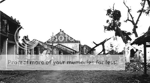 Dựng lại nhà ở thành phố Cảng Hải Phòng. Chúng ta nhìn thấy gạch được nhặt và xếp lại chứ không xây bằng vữa!