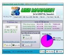 Chương trình có giao diện thân thiện, dễ sử dụng và không cần cài đặt. Sau khi kích hoạt trực tiếp tập tin Usbmanager.exe, bạn sẽ thấy chương trình được chia thênh 5 thẻ chính với các chức năng: