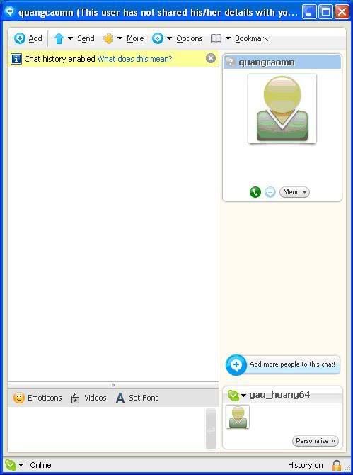 Để add nick 1 người nào đó bạn ấn vào mục add, sẽ hiện ra màn hình sau:
