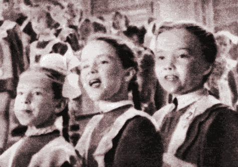Tại vườn hoa trước sân nhà Maruxia. Những chiếc lá trên thân cây bắt đầu nhú. Các bồn hoa đua nở. Maruxia, bà và mẹ đang bận bịu nấu ăn trong bếp. - Ôi, bà ơi! Ôi, mẹ ơi! Hôm nay là ngày cuối cùng. Mọi người nói không biết con có được lên lớp Hai hay không? Maruxia lo lắng. Có một hồi chuông. Chú bưu tá quen thuộc bước vào. Chú đang cầm trên tay bức điện báo. - Ở đây có ai là Maruxia Orlova không? Chú thận trọng hỏi. - Cháu đây ạ - cô bé trả lời. - Cháu có điện báo - người bưu tá nói – cháu ký đi. - Vâng ạ - Maruxia trả lời. - Cháu cầm lấy bút chì đi– chú bưu tá đề nghị. - Chú sao thế, chú làm sao thế. Cháu không còn bé bỏng nữa. Cháu đã viết bút mực từ lâu rồi. - Bé chạy vào trong phòng và trở ra với chiếc bút mực. Chú bưu tá chìa ra cho bé cái biên nhận. - Không có dòng kẻ ạ - Maruxia sợ hãi - chỗ để ký thì hẹp quá. - Có như thế nào thì cháu cứ ký tưng ấy – chú bưu tá đề nghị. Maruxia cố gắng viết: M. Orlo… - Không sao đâu, đủ rồi. - người bưu tá nói và đưa cho Maruxia bức điện – cháu đọc đi! - Cháu xin ạ - Maruxia trả lời và đọc: “Chúc mừng con gái lên lớp Hai…” và bỗng dưng Maruxia dừng lại. Bé đỏ mặt. Có một từ cháu không thể đọc qua được! Cô thú nhận bằng giọng yếu ớt. - Từ nào vậy? - “Tчк” – Maruxia phát âm thử. - À, đây có nghĩa là “Точка - dấu chấm” . Đấy là cách viết tắt – chú bưu tá giải thích. - Nhưng viết tắt không đúng – Maruxia quả quyết nói. - Cháu không cần phải chú ý đến điều đó đâu. Cháu cứ đọc đi – chú bưu tá đề nghị. - “…Trưa mai bố sẽ bay về. Hôn con. Bố”. Maruxia nhìn tất cả xung quanh. Bé chạy ào đến ôm lấy bà, mẹ và chú bưu tá. Maruxia đã nhận bảng điểm. Lần này trong bảng điểm của cô một loạt toàn điểm năm. Bên dưới có xác nhận của nhà trường: Được lên lớp Hai. - Maruxia ơi – cô Anna Ivanova ngạc nhiên - chả lẽ con không vui mừng ư? - Con không vui mừng á? Đến lượt Maruxia ngạc nhiên – Cô sao vậy! Ôi, con không vui! …Con chỉ nghĩ… rằng bảng điểm lần này sẽ không như mọi khi. - Như khi nào? - Con không biết. Con nghĩ…với những cánh đồng chín vàng. Với muôn vàn đoá hoa …Lớp Hai đấy! Điều này có thể phát điên lên mất thôi! Maruxia cùng bố mẹ đến trường vào buổi chiều. Khi đi qua chiếc loa công cộng, có tiếng nhạc phát ra. Và một giọng nói trang trọng vang lên: - Chúc mừng các em học sinh nam nữ lớp Một đang bước lên lớp Hai! - Họ chúc mừng chúng con – Maruxia nói và mỉm cười tự hào. ….Trong hội trường của trường học. Đầy không khí ngày lễ và hội trường được trang hoàng lộng lẫy. Tất cả những lớp Một xếp thành từng hàng - những chủ nhân khởi xướng buổi lễ ngày hôm nay. Các cô giáo, như những người chỉ huy, đứng bên cạnh các em học sinh nữ. Người dẫn đầu hàng đầu tiên là cô Anna Ivanova - Lớp Một “A” - Xin chúc mừng tất cả các em – thày hiệu trưởng nói- Tôi xin chân thành chúc mừng tất cả các em, các cô gái. Năm học đầu tiên của chúng ta đã kết thúc. Vừa qua, các em đã lao động thực sự, bằng tất cả sức lực của mình – và các em đã có buổi lễ ngày hôm nay. Các em được nâng lên một bậc cao hơn. Bây giờ tất cả các em – đã là những nữ sinh lớp Hai của trường học Xô viết số 156. Các em hãy nỗ lực hơn nữa sau một dịp hè và nhanh chóng trở lại trường. Cho tới một năm học mới. Cho tới Mùng Một tháng Chín! Tất cả vỗ tay thật to. Trong hội trường có rất nhiều khách. Và những cậu bé từ trường học bên cạnh cùng các cô giáo của mình được đặc biệt mời đến dự buổi lễ trịnh trọng này- trong số họ có cả Xerioza. Trong hội trường có các phụ huynh, những người lãnh đạo của nhà máy mang tên Stalin, cả nhà thực vật học có bộ râu dài quen thuộc với chúng ta. Bức màn được mở ra. Maruxia bước ra sân khấu. Cô tuyên bố: - Bây giờ chúng em - những học sinh lớp Một… Sau cánh gà có tiếng động. Các cô gái thò đầu ra cánh gà. Các cô nhắc khẽ Maruxia. Các cô bé tranh nhau: - Lớp Hai! Lớp Hai chứ! Maruxia luống cuống, nhưng cô trấn tĩnh lại ngay như không có việc gì. Cô chỉnh lại: - Cháu đã vô tình mặc lỗi. Giờ đây chúng cháu, những học sinh lớp Hai xin được biểu diễn. Bước ra sân khấu là học sinh lớp Hai “A” với đầy đủ các bạn. Các em học sinh đồng thanh hát: ![]() Первый класс В первый раз Год назад ты принял нас. Перешли мы во второй И прощаемся с тобой. Мел, доска, картины, карты Вместе с нами перейдут. Чуть повыше станут парты. Вместе с нами подрастут. Полюбили мы друг друга, За подруг стоим горой, И со мной моя подруга Переходит во второй. А учительница что же? Бросит разве нас с тобой? Нет, учительница тоже Переходит во второй. Так, дорог