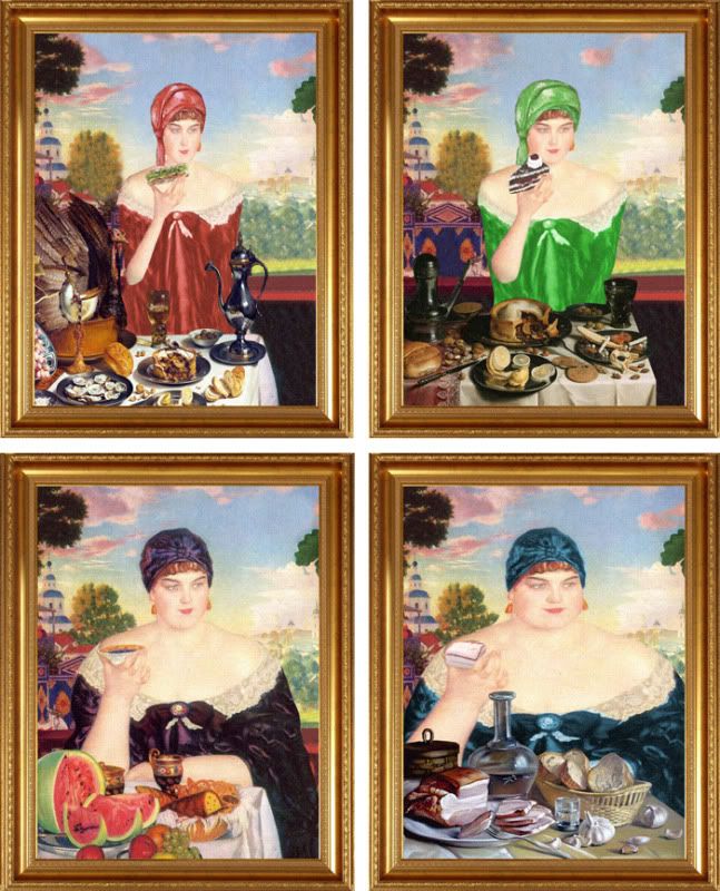Coi như một hình thức thư giãn cuối tuần. 1.Đây là bức tranh nổi tiếng của họa sĩ Repin "Ivan hung đế giết con trai". Trong seri này, hóa ra hoàng tử chết là do bị ngã khi...chơi đu: ![]() 2. Còn đây là bức tranh của Reshetnikov "Lại bị điểm hai". ![]() 3. Bức "Những người kéo thuyền trên sông Volga" cũng của Repin: ![]() 4. Bức này thì quá quen thuộc rồi "Alionuska" của Vasnesov, nay thì ta đã biết tại sao nàng ủ rũ đến vậy: ![]() 5. Bức cuối cùng này thì chịu, không biết của ai. Lý giải nguyên nhân nàng "phì nhiêu" là do "măm măm" nhiều: ![]() 6.Bức này không phải của Nga, mà là bức "Tiếng thét" của Munk. Gặp cướp thì ai cũng phải thét lên là đúng rồi:
