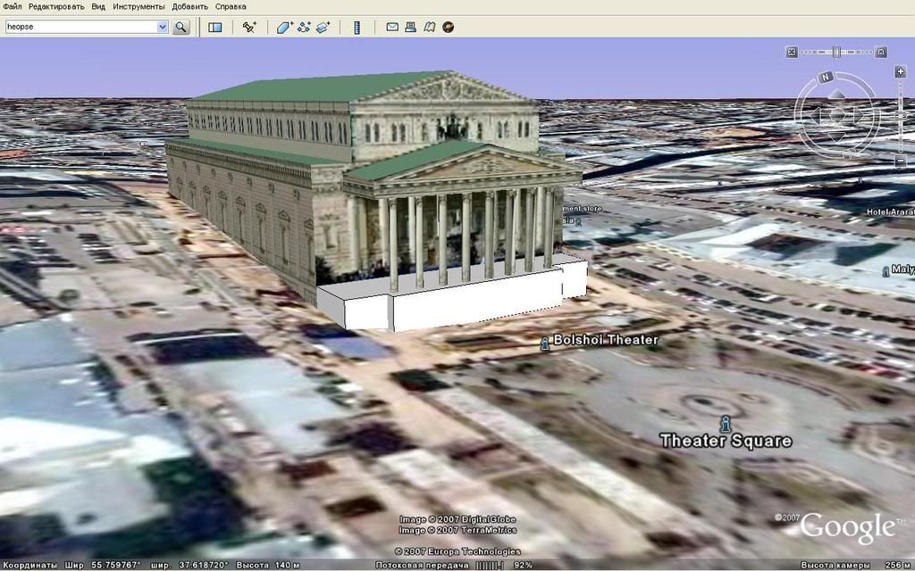 А вот как видно на карте московский Большой Театр ...
