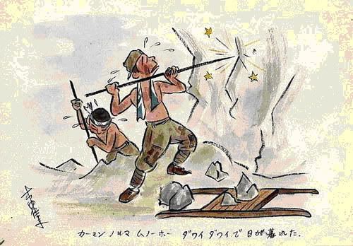Chúng tôi phải dẫn những người bị bệnh quáng gà tới nhà xí. Vì thế chúng tôi gác hàng đêm và đổi phiên cho nhau. Trời khoảng -20oC nên đây là một việc không sung sướng gì. Tôi vừa sụt sịt vừa ngắm nhìn trăng đẹp và những giọt nước mắt lạnh cứng đọng trên gò má tôi.