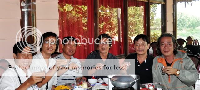 Thời gian eo hẹp, mà ai cũng muốn " chết ", chí ít cũng " bị thương", riêng bác Hổ thì không ai dám nói ra nói vào vì vẫn đang trong vai trò " Người cầm lái vĩ đại". Rốt cục, 6 anh em (Có thêm 1 anh bạn của Nish tôi đến công tác tại NM của bác Hổ) chỉ cưa có được 1 chai Smirnov và phân nửa " lọ nước thần " làm từ men hoa cúc của bạn Xamova thì đã 15h00, đúng là chả bõ xỉa răng. Bạn Kok lại phát biểu một câu rất tội nghiệp khi bác Hổ giục lên đường :Thôi ta đừng uống nhiều, chỉ hết 2 chai là thôi. Phải tội, cái chai của Xamova là loại 1,5 lít, mà theo như " nhà thơ tóc dài, cưỡi xe máy đi dọc đất nước" thì nó là loại 55 độ cơ đấy. Hi hi. Chờ ảnh đẹp của bác Hổ, Xamova và các bạn nhé!