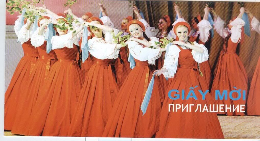 AT vừa gọi điện cho chị bạn Natlya Nikokosheva bên hội Hữu nghị Việt Nga để hỏi vé. Chị ấy có nói rằng vé đã phân phát hết rồi. Nhưng chị ấy cho biết là vé mời mà phát nhanh thế thì chắc còn nhiều ghế trống. Cho nên bác nào rất muốn xem mà nhà không xa quá thì cứ đến sớm tầm 19g00 (trong vé mời AT thay ghi 20g00 tại nhà hát Hòa Bình đường 3-2) thì thể nào cũng vào được cùng với chị ấy.