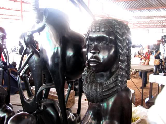 Chất liệu của các bức tượng đều là gỗ bác ạ. Các nghệ nhân châu Phi rất tài tình làm ra các bức tượng thật sự biểu cảm và mang đậm nét Phi châu. Họ nhuộm đen, đánh bóng tượng, y như làm bằng sừng trâu vậy. Đó là hàng đại trà. Còn hàng cao cấp thì được làm bằng một loại gỗ mun đặc biệt, cũng đen bóng như vậy, nhưng giá đắt hơn nhiều.