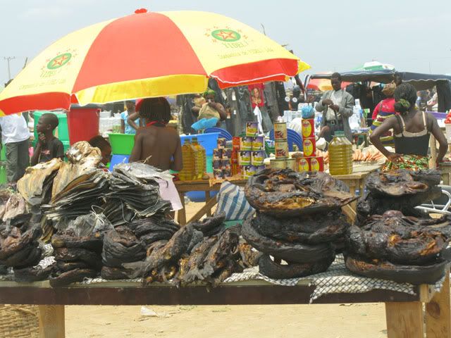 @ Bác Bình Dị: Trên ảnh, phía bên trái là những con cá khô xếp thành lớp. Còn bên pbải là cá trê phi đã hun khói sấy khô, họ cuộn lại thành 1 vòng tròn như vậy .