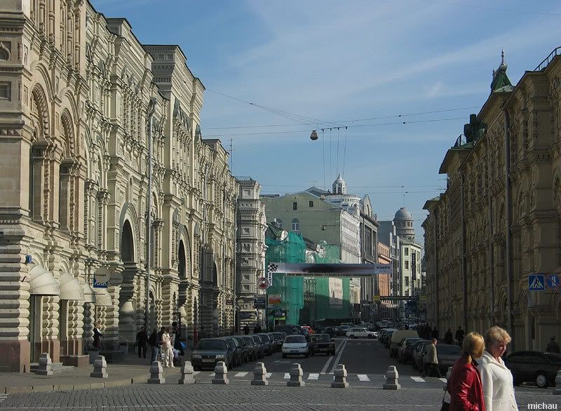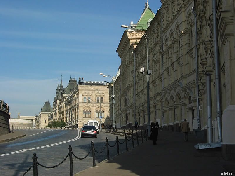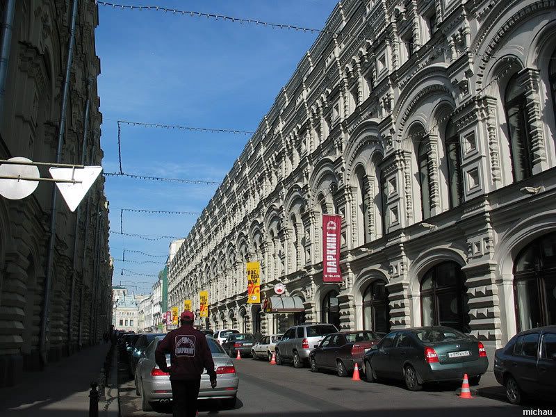 Chúng ta rẽ phải sang đường Ilinka. Phía bên trái chúng ta có thể nhìn thấy lối vào GUM