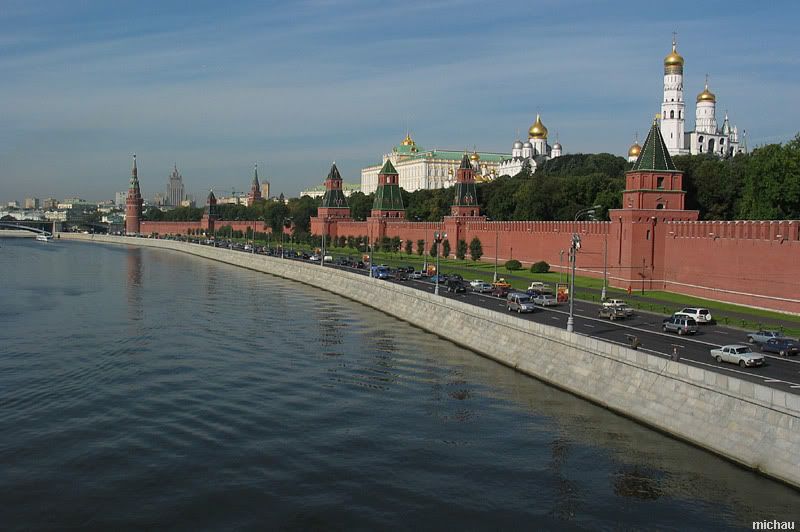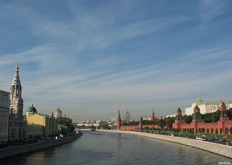 Một phong cảnh kinh điển của Moscow nhìn từ cây cầu Bolshoy Moskvoretsky (Một cây cầu lớn bắc qua sông Moscow)