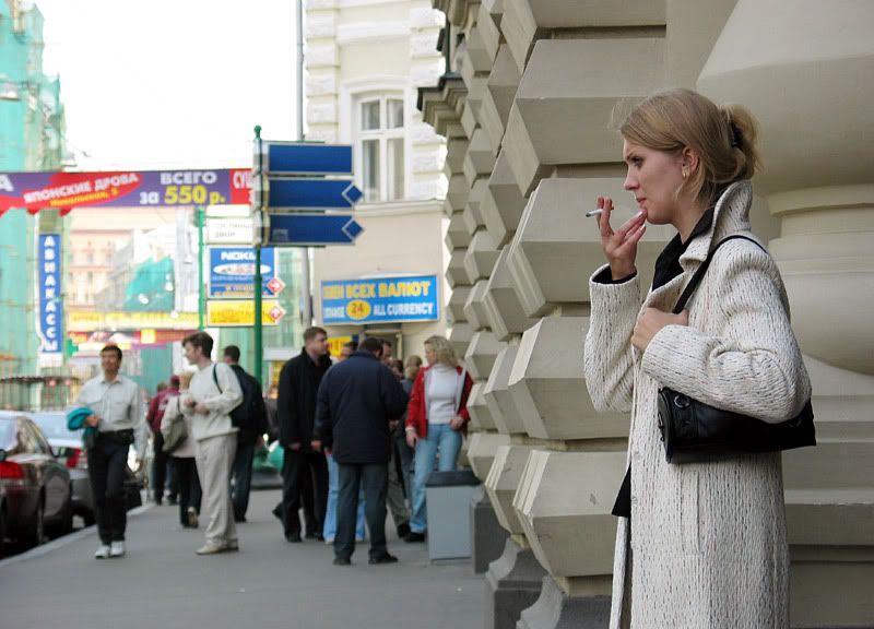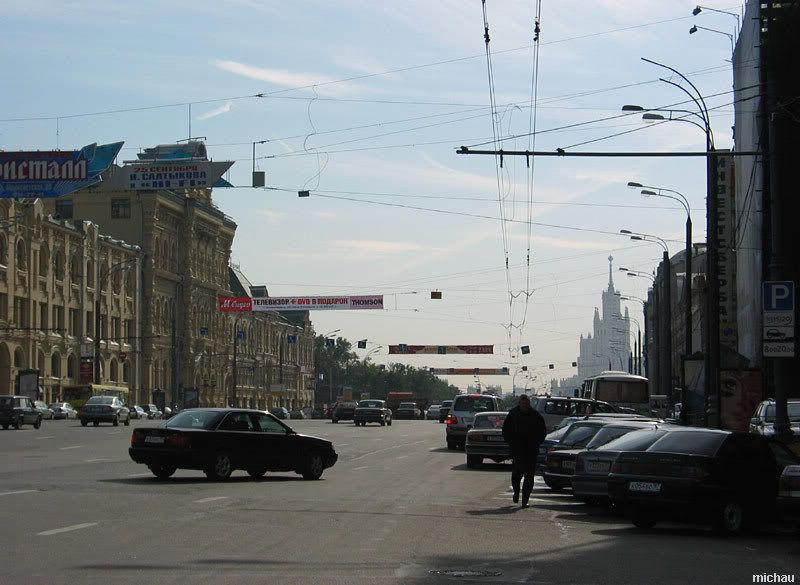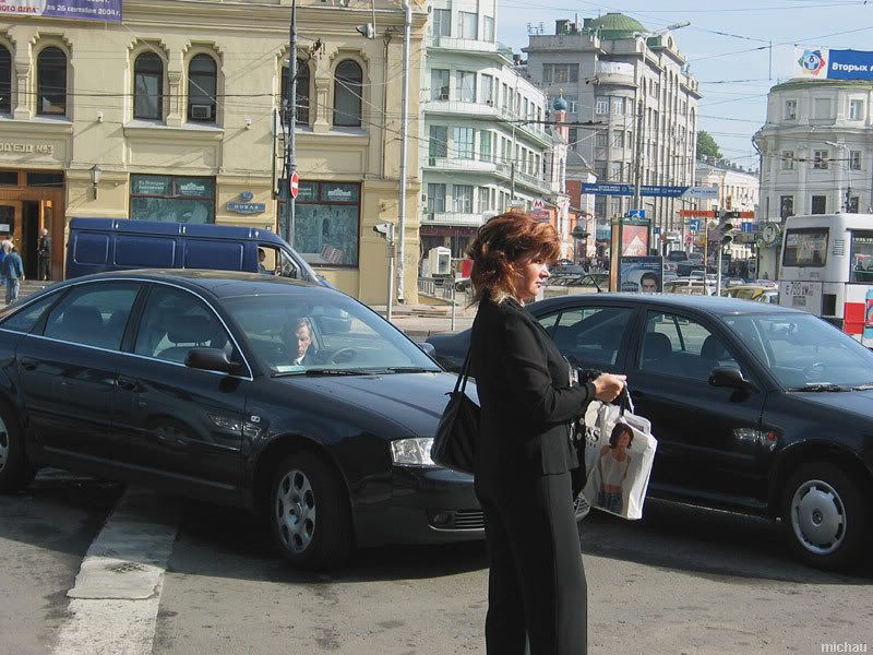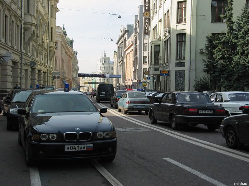 Chúng ta rẽ trái và tiếp tục đi theo hướng quảng trường Lubyanskaya. Một lái xe đang đợi ông chủ của mình. Cũng lại một đặc trưng nữa của quang cảnh Moscow