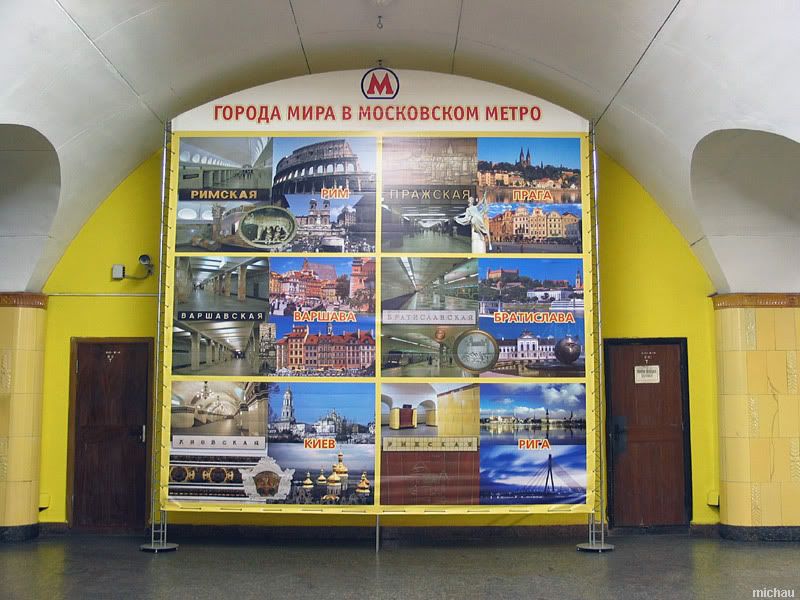 Ở đây có điều đáng chú ý: một tấm bảng dán ảnh ở bến xe điện ngầm Moscow có các địa danh toàn liên quan đến các thành phố khác trên thế giới: Rome, Prague, Bratislava, Kiev, Riga