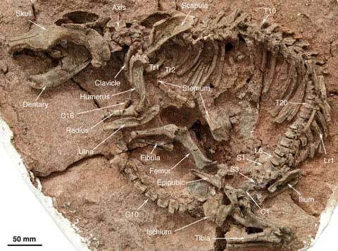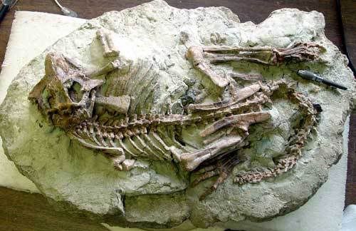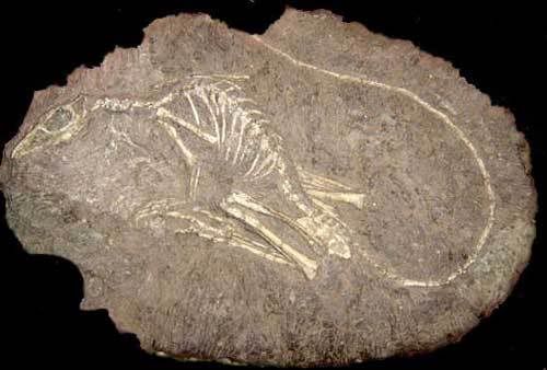 Hóa thạch Meososaurus - một giống động vật Bò sát sống trong môi trường nước ngọt, hiện gặp trong đá tuổi 200 triệu năm ở hai bên bờ Đại Tây Dương (Phi châu và Nam Mỹ)