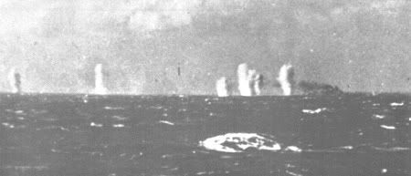 Những phát đạn đầu tiên của Quân Anh đã đánh trúng bên mạn chiến hạm Bismarck