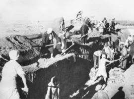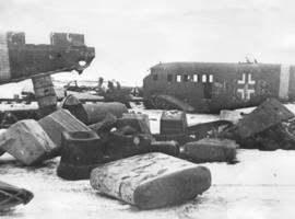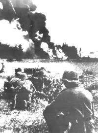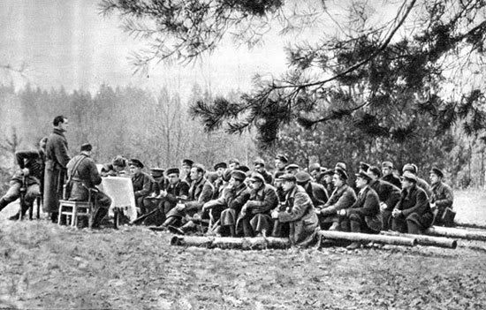 Đội hình bậc thang với quân lính Đức, bị phá hủy bởi quân du kích của ngoại ô Leningrad (bức ảnh được tìm thấy trong xác chết của một sĩ quan Đức năm 1942)