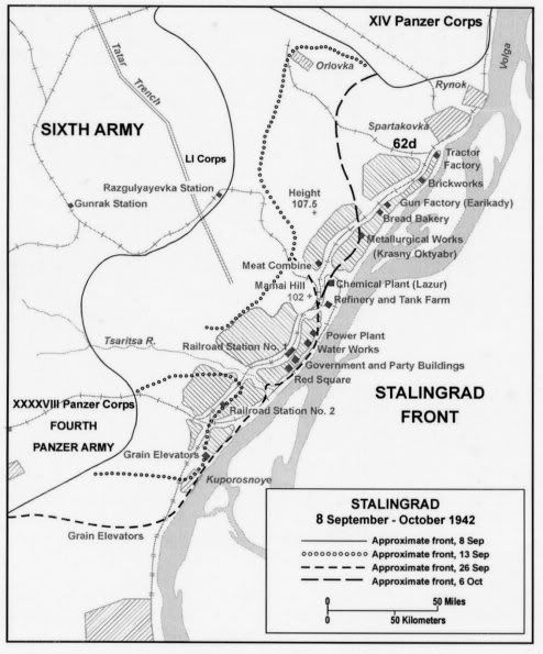 Các cuộc chiến tại khu làng Orlovka ở phía Tây bắc thành phố Stalingrad đã bắt đầu khai triển từ ngày 28/9 cho đến tận ngày 12/10. Các trận đánh kết thúc cùng với tình hình các lực lượng phát xít Đức tràn quân ra các khu vực nhà máy và công xưởng của thành phố. Các lực lượng quân đoàn đồng bằng số 6 của Đức hiện vẫn đang áp đảo hoàn toàn quân đoàn số 62 Xô Viết về số lượng binh sĩ, pháo binh, xe tăng và các loại máy bay chiến đấu. Ngày 15/10, các sư đoàn Verrmaht đã bẻ gãy một phần mỏng của hàng phòng ngự Xô Viết ở gần sông Volga trong khu vực xí nghiệp máy kéo Stalingrad. Các lực lượng quân đoàn đồng bằng số 6 của Verrmaht đã liều chết thêm một lần nữa để đánh chiếm thành phố vào ngày 11/11, vào cuối ngày hôm đó chúng huy động pháo binh dội lửa vào khu vực phía nam và ồ ạt xua quân vượt qua 500 mét phòng tuyến thẳng đến sông Volga. Nhưng đây lại là một thắng lợi cuối cùng của các lực lượng quân phát xít Đức.