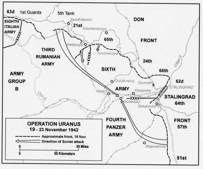 Nagy 20/11, các lực lượng của Stalingrad đã tổ chức một đòn đầu tiên tại phía nam thành phố mở đường cho các cuộc tấn công kế tiếp. Quân đoàn số 62 lúc này cũng đang nắm giữ thế trận trong thành phố. Các cuộc chiến đấu trên mặt trận cũng được sự hỗ trợ của không đoàn số 8. Quân Đức hiện đang bị thất bại ê chề và nguy kịch trên các mặt trận Tây bắc và trong thành phố Kalatch.