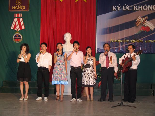 Trên sân khấu là tấm phông mà bác hongducanh đáng kính đã giới thiệu ở trên ạ - nhẹ nhàng mà đầy ý nghĩa.
