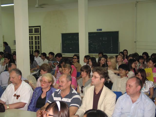 Hội trường lớn thực ra cũng không lớn lắm - đấy là em so với lòng nhiệt huyết và tình yêu bao la với Nước Nga được cụ thể hóa bằng những con người. Đó là không kể 15h là thời điểm nhiều người sẽ phải vắng mặt vì không thu xếp được công việc chẳng hạn....... Em chỉ lo không đủ chỗ ngồi cho tất cả mọi người (mà đúng là lúc đầu cả hội trường chật kín thật)