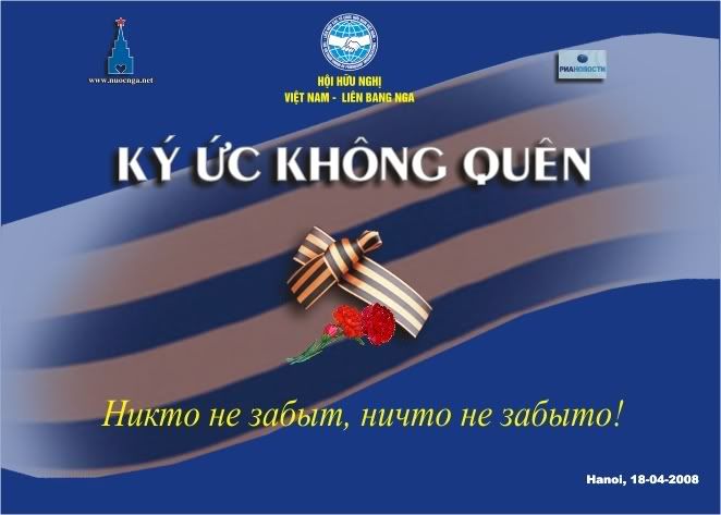 Để kỷ niệm Ngày chiến thắng năm nay, Trung ương Hội Hữu nghị Việt nam-Liên bang Nga phối hợp cùng Hãng thông tấn quốc gia Nga RIA-Novosti và Trang web NuocNga.net của chúng ta tổ chức Chương trình "Ký ức không quên".