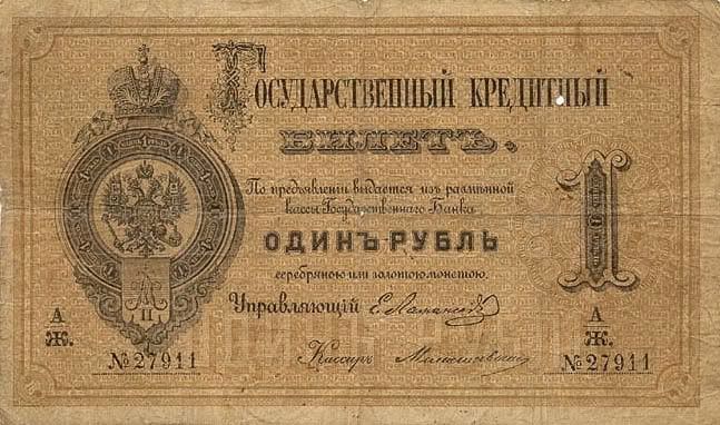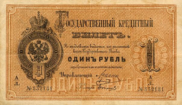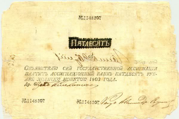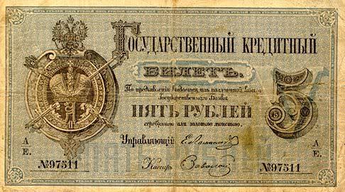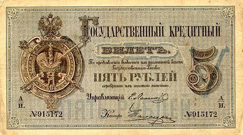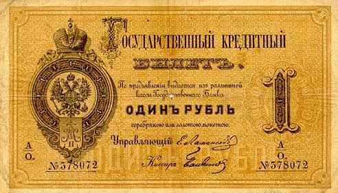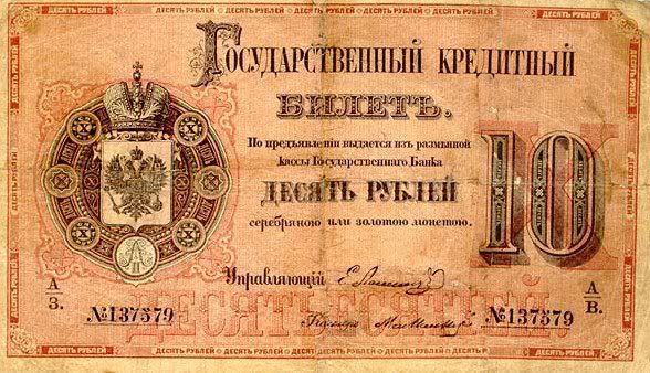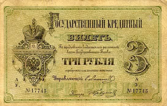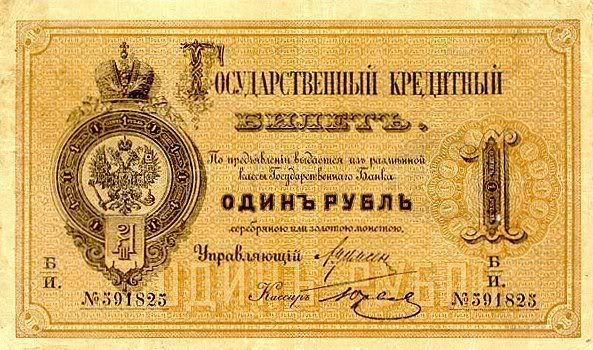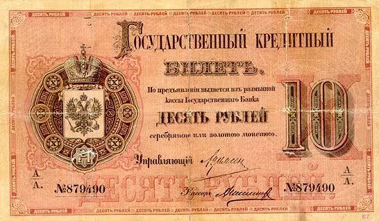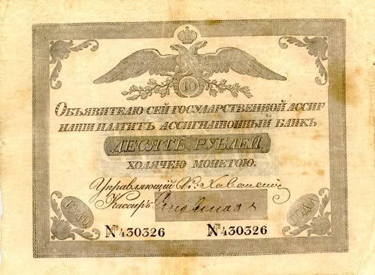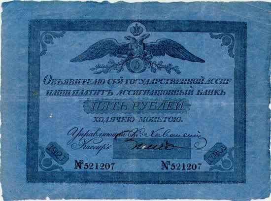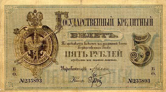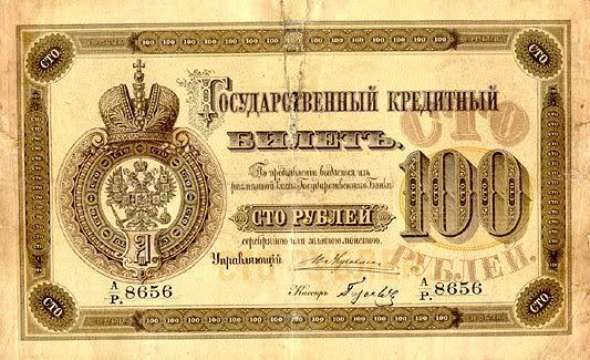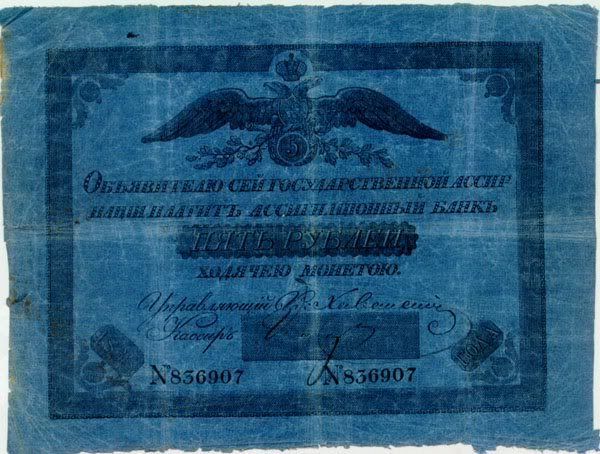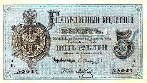 Năm 1843, giấy bạc đã sớm được thay thế. Với mệnh giá mới được ban hành này, cuối cùng thì cũng đã cân bằng được giá trị với đồng tiền bằng bạc. Nhưng, cuộc chiến tranh Crưm đã buộc phải in thêm nhiều tiền giấy và một lần nữa các mệnh giá đồng tiền giấy lại một lần nữa mất giá