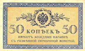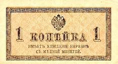 Chiến tranh vẫn tiếp diễn, dẫn đến không chỉ lạm phát, mà còn dẫn đến thiếu hụt tiền kim loại. Do đó, các tờ giấy bạc có mệnh giá từ 1 đến 50 kopek được phát hành. Nhưng để in chúng thì thật không phải rẻ và chẳng bao lâu các tờ giấy bạc được thay thế bằng các con tem bưu chính. Người sử dụng đã dùng con tem bưu chính để thay thể tờ giấy bạc