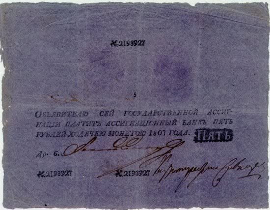 Giấy bạc đã làm cho việc trao đổi tiện tệ được dễ dàng hơn và do đó ngày càng được nhiều người ưa chuộng. Những tờ giấy bạc có mệnh giá 5 và 10 rúp đã được phát hành. Nhưng số lượng giấy bạc lưu hành cũng qúa lớn do đó vào cuối thế kỷ thứ 18 các mệnh giá thực của chúng bắt đầu bị giảm sút. Vào năm 1790 một tờ giấy bạc rúp chỉ còn giá trị bằng 87 copek (1/100 rúp), năm 1796 = 79 copek, năm 1797 = 70 copek. Do cần rất nhiều tài chính cho những cuộc chiến tranh do Đế chế Nga khởi xướng vào đầu thế kỷ thứ 18 nên đã làm cho mệnh giá tờ bạc rúp chìm xuống chỉ còn 25.4 copek. Cuối những năm 1814 – 1815 mệnh giá của những tờ giấy bạc đã đạt tới mức thấp kỷ lục còn có 20 copek.