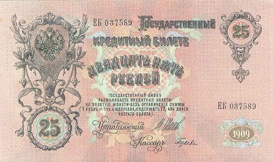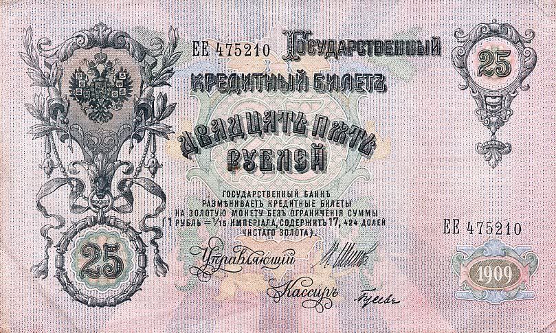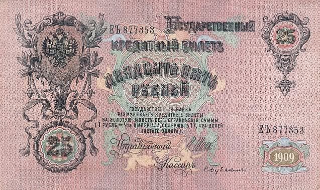 25 rúp được in vào năm 1909